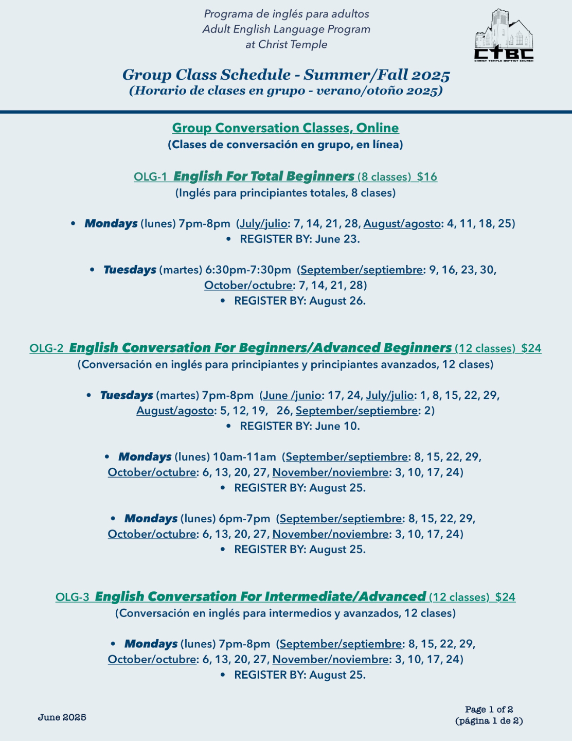 ¡Nos encantaría verte en clase! (Véase más abajo)