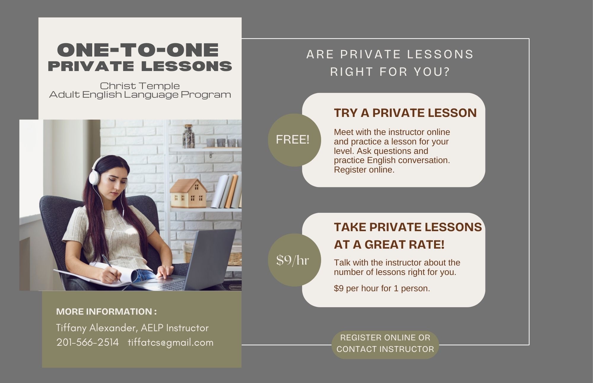 FREE Trial Private Lesson (Lección privada de prueba gratuita, véase la información más abajo.)