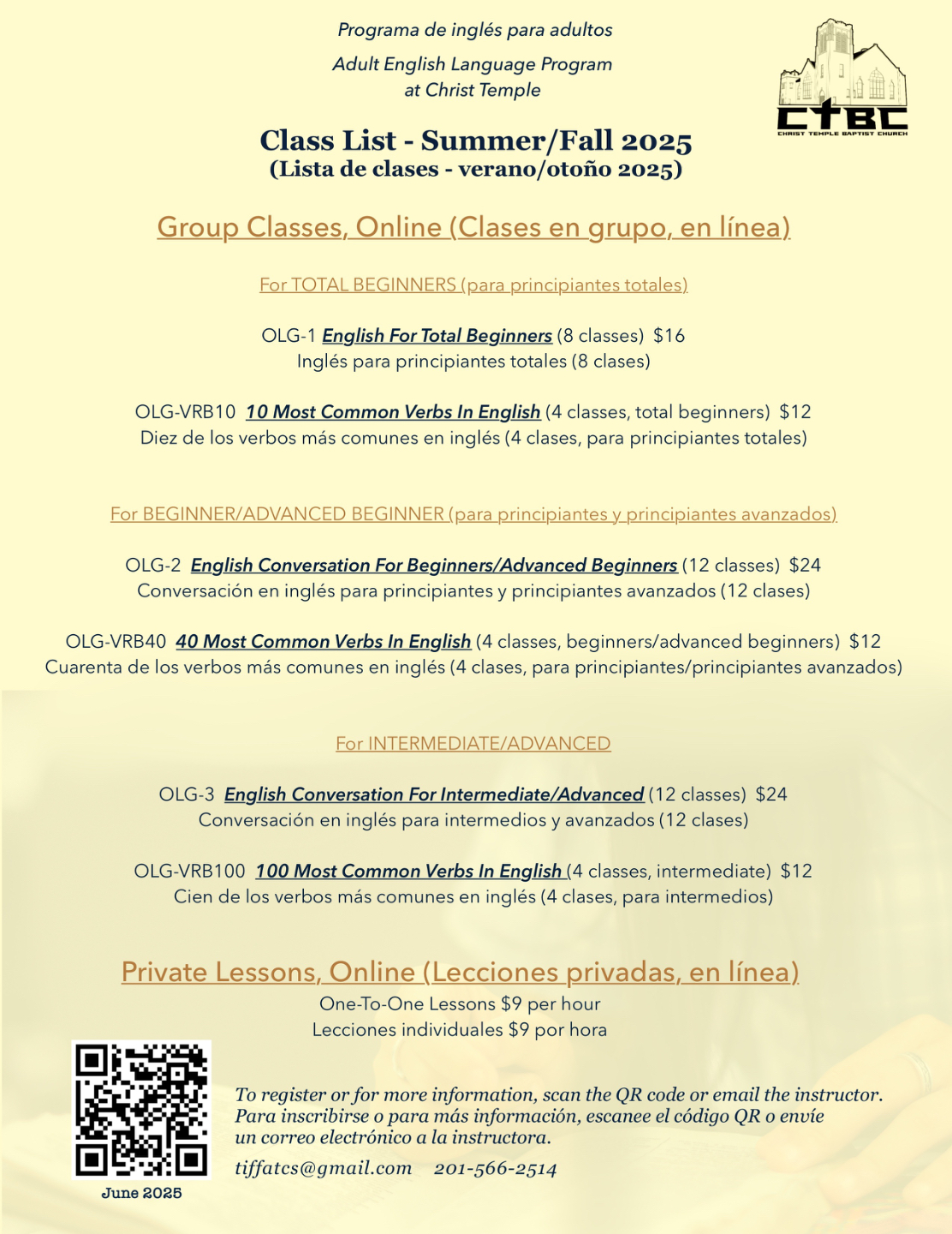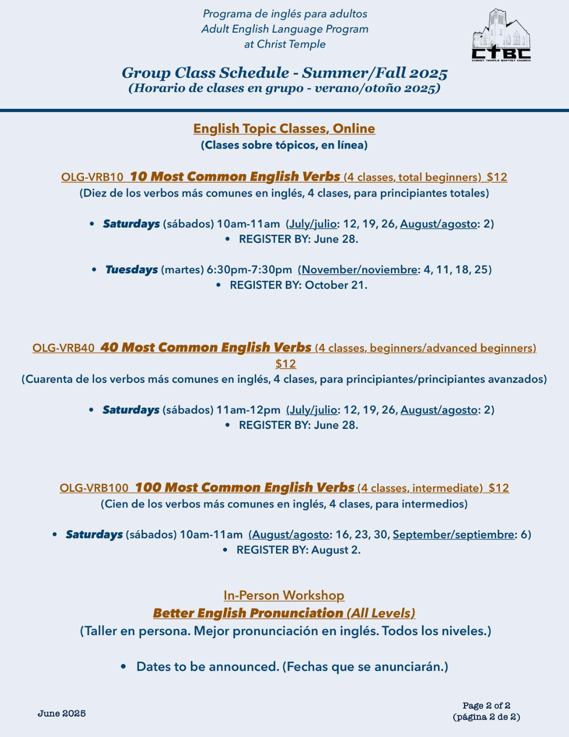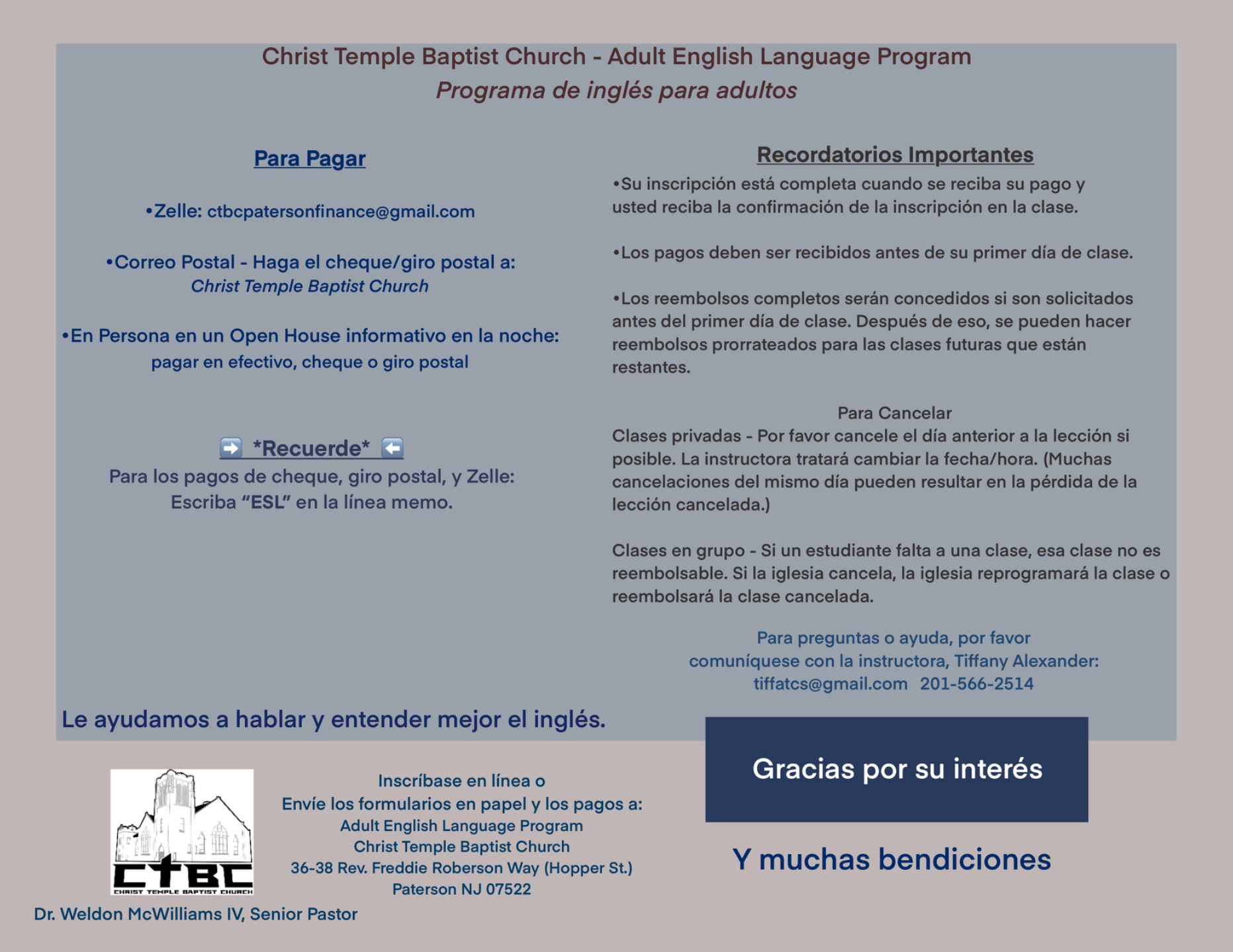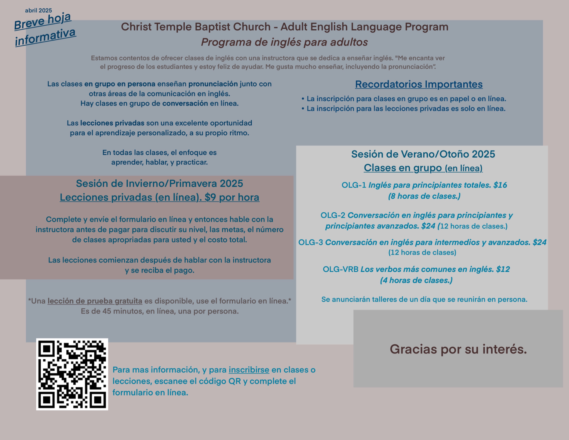 Nuestro formulario de inscripción está en inglés/español.