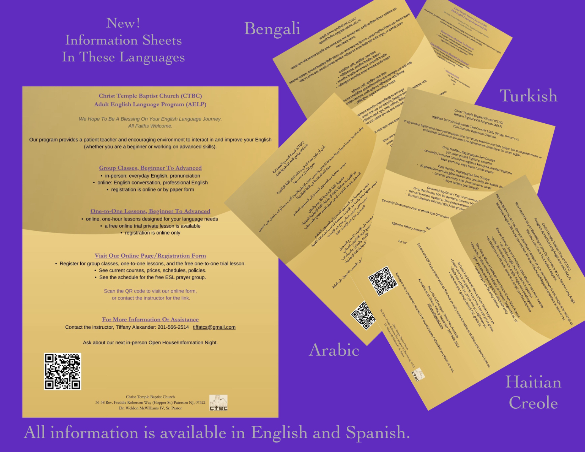 Group Classes and Private Lessons are available, taught by an experienced ESL teacher.