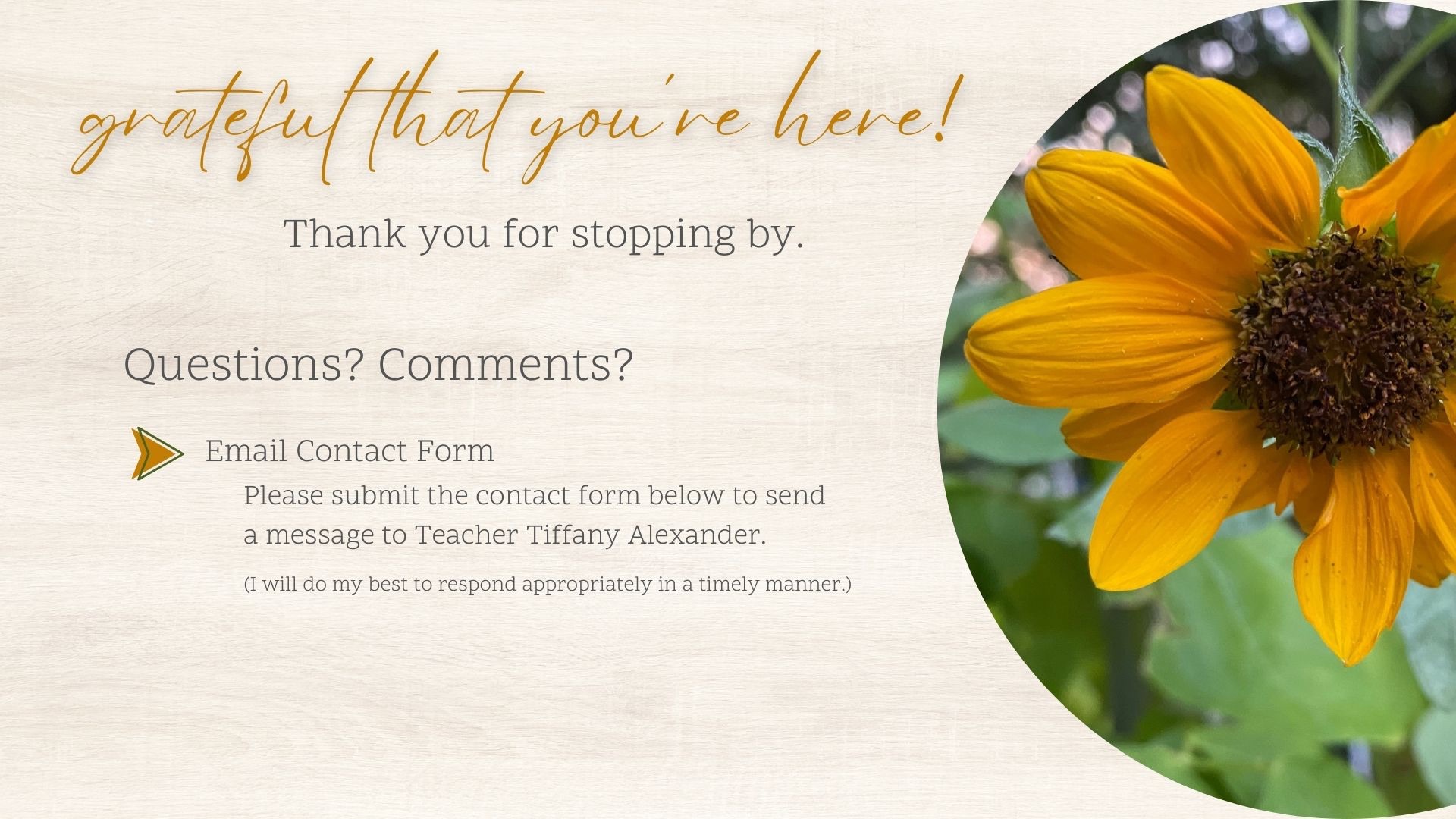 Please use this form to email Teacher Tiffany Alexander